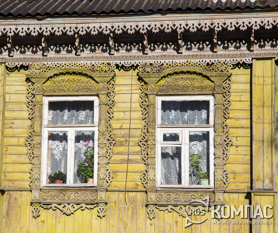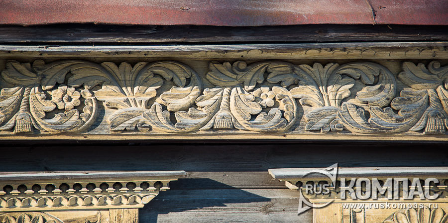 Объемная резьба карниза и наличников дома Поляковых (Московская, 108)