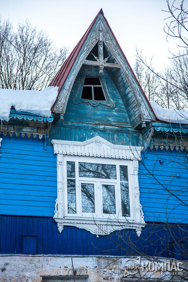 Глядя на потемневшую от дождей, местами в подпалинах, прогнившую и изъеденную жучками деревянную резьбу, которой щедро украшены чудом сохранившиеся старинные гороховецкие дома, немеешь от изумления - и вот это все сделано местными мастерами, которые так умели работать топором? Корабельная объемная резьба на крестьянском доме Беловых, XIX в. (Московская, 30)