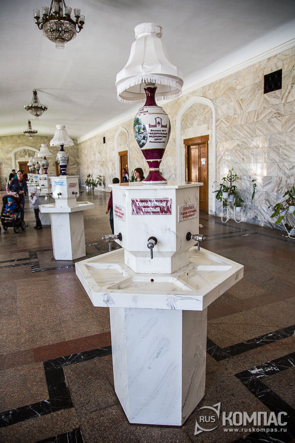 В бюветы подается нарзан трёх видов - "общий", "сульфатный" и "доломитовый", причем, подогретый и холодный.