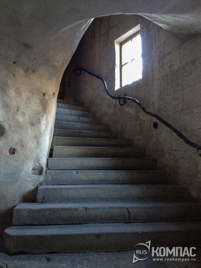 Единого мнения о времени сооружения третьего пещерного храма нет. Известно только, что 1867 году он был перепланирован из средневекового храма и освящён в честь святого Мартина Исповедника. В 1899 году был установлен иконостас в византийском стиле из разноцветной мозаики с иконами кисти московского художника Виктора Доримедонтовича Фартусова. Средства на иконостас (7 тысяч рублей) выделил Московский купец Михаил Яковлевич Рогожин. Но сегодня здесь никаких украшений, только каменные стены и свод. Хотя все три храма вырублены в камне и невелики по размерам, в них нет ощущения замкнутости. Скорее спокойствие, спокойствие и еще раз спокойствие. Фотографий отсюда не будет, потому что не хотелось мешать остальным. Есть только одно фото из дальней комнаты, где никого не было. В древности она служила трапезной, и здесь до сих пор сохранилась каменная скамья, вырубленная вдоль стен.