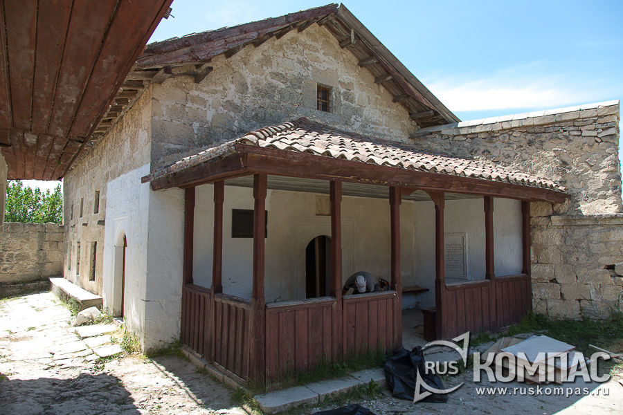 Чем интересен Чуфут-Кале так это возможностью увидеть в одном месте строения не только разных времен, но и различных культур. Выйдя из дворика с кенассами на открытую площадку, бывшую когда-то главной площадью Старого города, куда сходились уже знакомая нам Кенасская, Средняя и Бурунчакская улицы, натыкаемся на живописные руины и хорошо сохранившееся здание восточного вида. На месте руин когда-то был ханский дворец, мечеть и монетный двор.