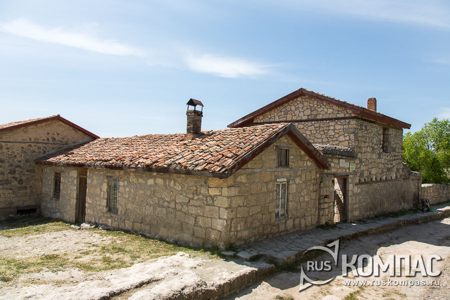 Есть версия, что при аланах до прихода в город татар здесь мог размещаться пещерный монастырь. И хотя подтверждений этому немного, за вырубленными в скале помещениями закрепилось название "Христианский пещерный комплекс". От пещер по выбитой в скале дороге выходим на плато, и дальше идем по одной из трех улиц старой части города - Кенасской. Здесь за высокой оградой стоят кенассы - караимские храмы, серая каменная кладка и черепичные крыши которых хорошо просматривались еще при подходе к городу.