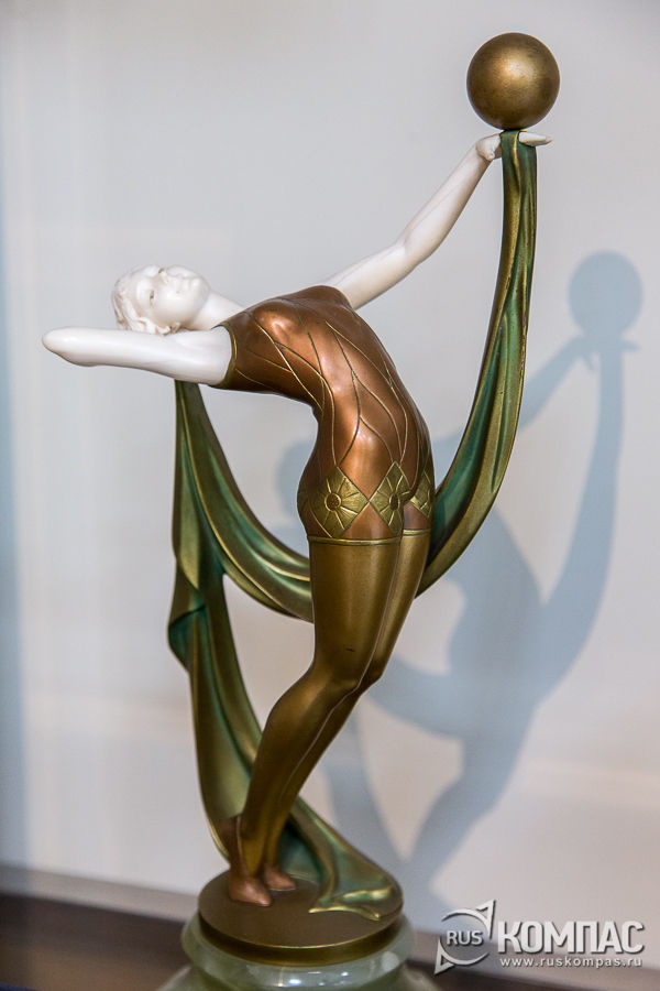 Музейный зал небольшой. Здесь намеренно придерживаются кабинетного принципа, чтобы скульптура жила в той же атмосфере, что и в период ар-деко. Здесь нет стеклянных витрин, ничто не мешает рассматривать статуэтками так близко, насколько зрителю позволяет воспитание. Из-за этой близости лица девушек из слоновой кости кажутся странно живыми. Выражение их глаз, изгиб губ меняется в зависимости от освещения и от того, с какого ракурса вы на них сморите. Поэтому не удивляйтеcm, если вам почудится, что какая-то из статуэток моргнёт или улыбнется.