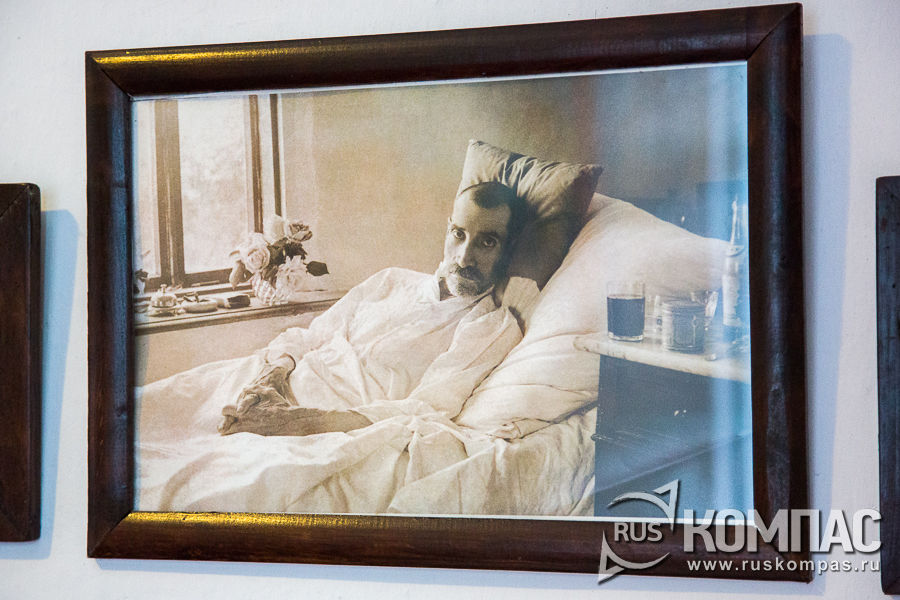 Фотография сделана за 9 дней до кончины 30 июня 1932 года. На подоконнике - букет роз из собственного сада