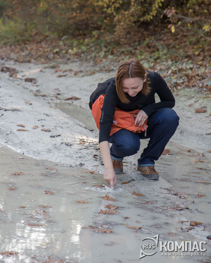 Изучили органолептические свойства придорожной грязи. Оказывается, она жирная, как глина, и напоминает гипс.