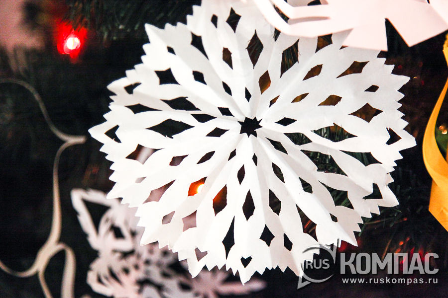 В 1930-40-х годах были очень популярны гирлянды из разноцветных бумажных флажков. И, конечно же, в каждом доме всей семьей вырезали бумажные снежинки и фонарики, собирали гирлянды из бумажных колечек.