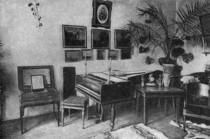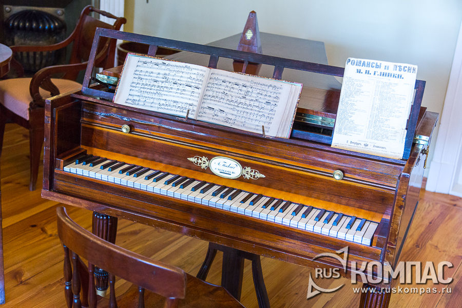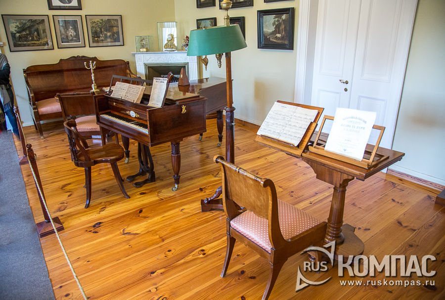 Возможно, под звучание рояля, родилось "Признание" к Алине: Алина! сжальтесь надо мною. Не смею требовать любви. Быть может, за грехи мои, Мой ангел, я любви не стою! Но притворитесь! Этот взгляд Всё может выразить так чудно! Ах, обмануть меня не трудно!.. Я сам обманываться рад! Летом 1825 года, когда в Тригорском гостила Анна Петровна Керн, Пушкин читал в этой гостиной поэму "Цыганы". В своих воспоминаниях Керн писала: "Однажды явился в Тригорское Пушкин с своею большою черною книгою, на полях которой были начерчены ножки и головки, и сказал, что он принес ее для меня. Вскоре мы уселись вокруг него, и он прочитал нам своих "Цыган". Впервые мы слышали эту чудную поэму, и я никогда не забуду того восторга, который охватил мою душу!.. Я была в упоении, как от текучих стихов этой чудной поэмы, так и от его чтения, в котором было столько музыкальности, что я истаивала от наслаждения; он имел голос певучий, мелодический и, как он говорит про Овидия в своих Цыганах: И голос, шуму вод подобный".