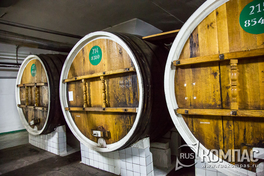В совхозах выращивают виноград и подготавливают молодые виноматериалы, т.е. производят молодые ординарные вина с выдержкой до 1 года. За это время вино выбраживает, после чего брожение стабилизируют, добавляя пшеничный спирт двойной очистки. В таком виде подготовленный виноматериал привозят на головной завод для дальнейшего производства марочного и коллекционного вина. С чердака бывшего царского винзавода мы спускаемся в заводской двор, периметр которого очерчивают 2 здания - здание бывшего царского винзавода и здание, которое построили в советское время.