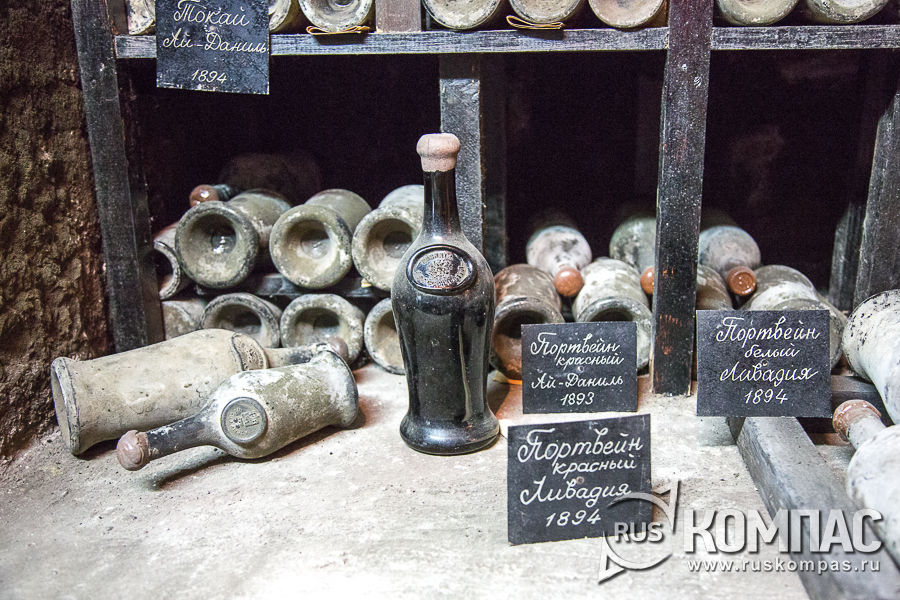 В нише №48 хранятся авторские голицынские вина из личной коллекции Льва Сергеевича. За 10 лет работы на Массандре Николай II выписал Голицыну премию в 100 тысяч рублей. Лев Сергеевич вернулся в свое имение в Новом Свете, где продолжил работу с вином. Незадолго до смерти он подарил свою энотеку Николаю II, и часть этого подарка сейчас находится в 48 нише. Голицын давал своим винам романтические названия - "Мед Голицына", "Мед алтайских лугов Голицына", "Седьмое небо князя Голицына". "Мускат Новый Свет Голицына" розлит в бутылки оригинальной формы, напоминающей балерину в пачке. На бутылке отлит герб Голицыных. Современные бутылки напоминают по форме голицынские, но с гербом "Массандры" с изображением башни с часами на царском здании. Если раньше вино разливали в бутылки разной формы, то последние 6 лет форма и объем бутылок стандартизирован -0.75 мл с вогнутым дном и с буквой "М" на донышке. Специалисты же считают, что от формы бутылки качество вина не зависит. В нише №52 выставлены старейшие вина Массандры - портвейн белый "Ливадия" 1891 года и портвейн красный "Ливадия" 1891 года урожая. Портвейн белый "Ливадия" - уникальная марка янтарно-белого портвейна, созданного из черного сорта винограда Каберне Совиньон. Вино производили до 1917 года по дорогостоящему "белому способу": собирали первые капли виноградного сока самотека, еще не содержащего красящих веществ из кожицы, поэтому вино из красного винограда оставалось янтарным.