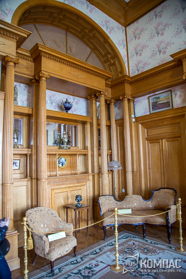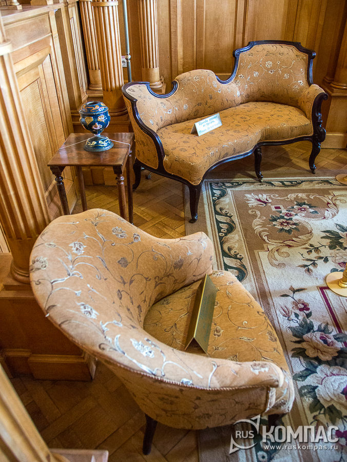 В своем письме матери Николай II писал: "Я в восторге от своего верхнего кабинета!" Как и все личные покои в Ливадийском дворце, верхний кабине оформлен по моде начала прошлого века - в стиле модерн. Мебель изготовлена русскими мастерами.