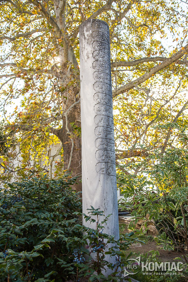 Около звонницы в 1880-х годах была установлена колонна из светло-серого мрамора, украшенная витиеватыми надписями - 1 стихом на арабском и 13 - на турецком языке. В стихах воспет "его величество шах султан-победитель". Предполагается, что эта колонна была высечена в честь турецкого султана Махмуда II и попала в Ливадию в качестве трофея после русско-турецкой войны 1877-78 гг.