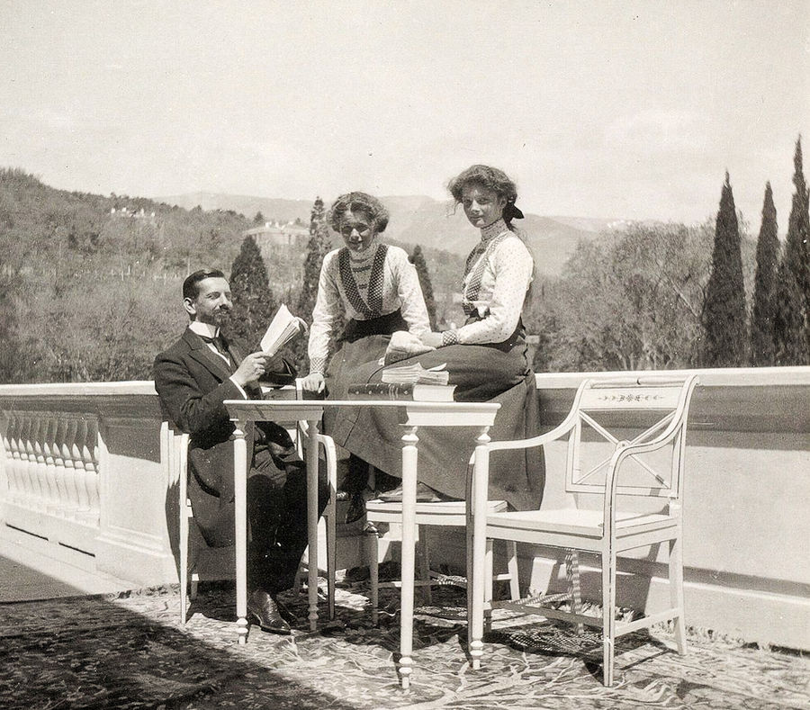 Великие княжны Ольга и Татьяна с учителем Пьером Жильяром, Ливадия 1911 г.