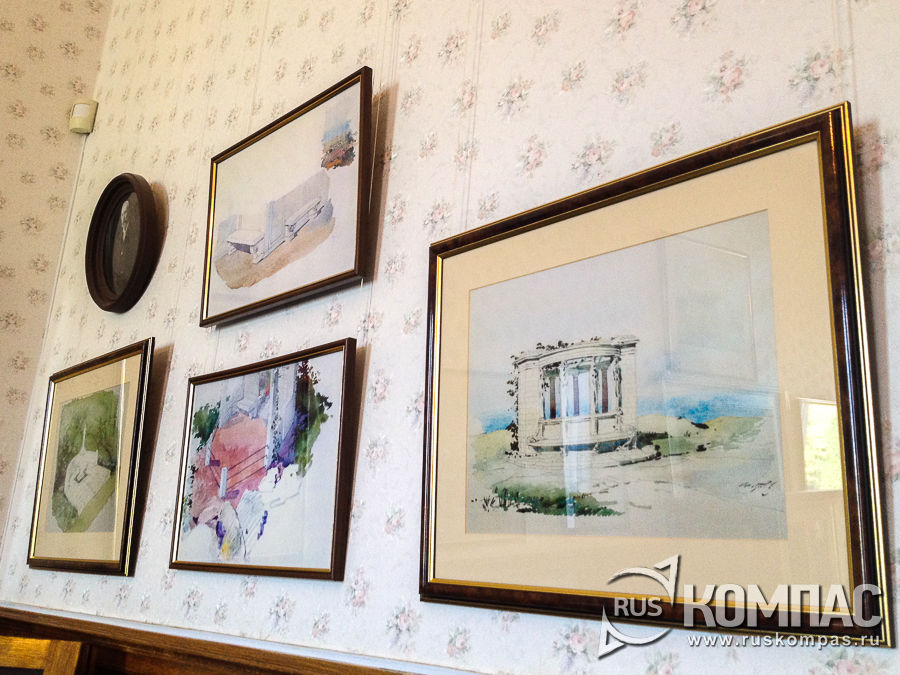 Уроки живописи царским детям давал архитектор Николай Петрович Краснов. На стенах вывешены несколько акварелей старших сестер Ольги и Татьяны, а также работы их учителя.