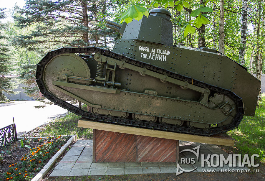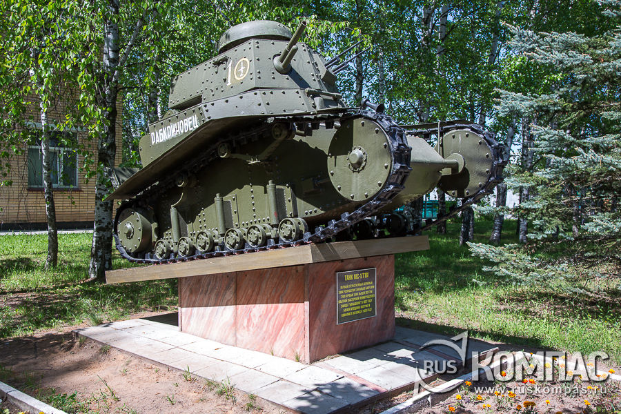 Танк создан на базе французского танка Renault FT-17 и его итальянского варианта Fiat 3000. Всего с 1928 по 1931 год было выпущено 959 танков этого типа, не считая прототипа. В 1938-1939 годах устаревшие и достигшие крайней степени износа Т-18 были сняты с вооружения или использовались как неподвижные огневые точки. В незначительном количестве использовались на начальном этапе Великой Отечественной войны. На соседнем постаменте установлен макет танка "Борец за свободу тов. Ленин". Это танк типа М или КС, сокращение от "Красное Сормово".