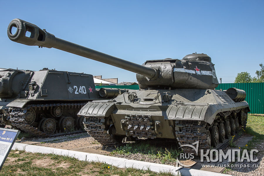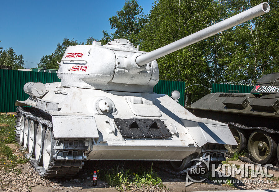 Здесь же легендарный Т-34-85 в зимней раскраске. "Дмитрий Донской" - танковая колонна, созданная по инициативе Русской Православной Церкви на пожертвования верующих и переданная в 1944 году танковым войскам СССР. В её состав входили 19 танков Т-34-85 и 21 огнемётный танк ОТ-34.