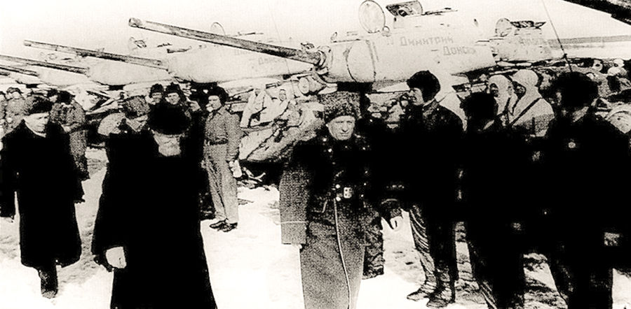 Всего церковью было собрано свыше 8 миллионов рублей, которые пошли на строительство 40 танков. Построенные на Нижне-Тагильском танковом заводе, боевые машины были перегнаны к деревне Горелки Тульской области, где 7 марта 1944 года состоялась их торжественная передача Армии. Перед бойцами Красной Армии с напутственной речью выступил митрополит Крутицкий и Коломенский Николай. Это была первая в годы войны официальная встреча церковного иерарха с бойцами. Передача колонны танков "Дмитрий Донской" митрополитом Крутицким и Коломенским Николаем, 7 марта 1944 года