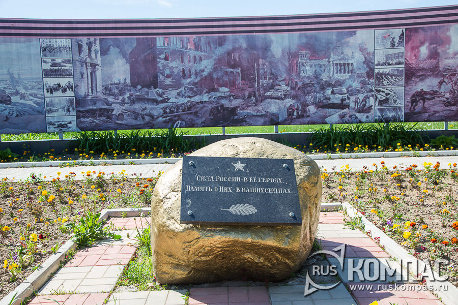 Пройдя по центральной аллее, между 6 и 7 ангаром можно увидеть еще один мемориальный камень.