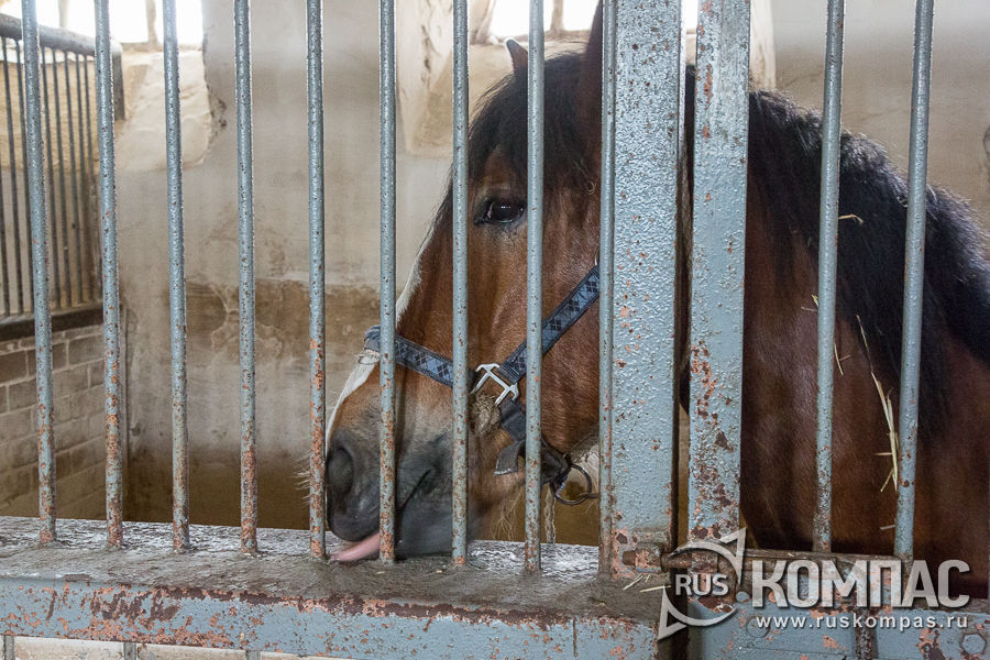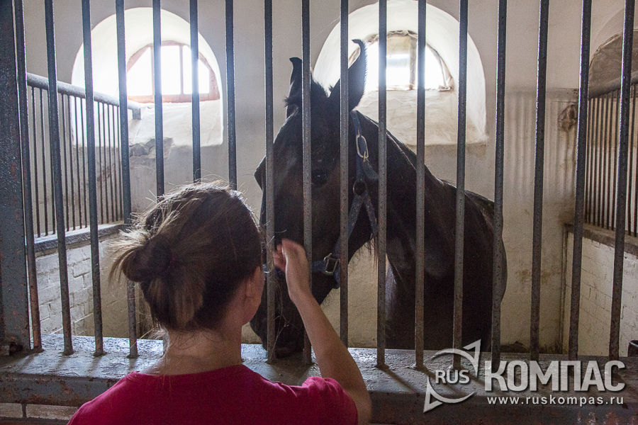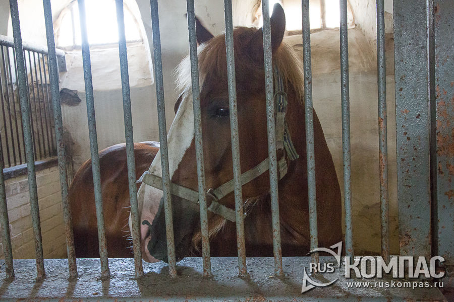 И конечно, проходя по конюшне, невозможно не остановиться рядом с лошадьми. Еще в музее можно запастись сахаром для их угощения. Заметьте, у лошадей очень выразительная мимика. Кто-то с интересом поглядывает на пришедших сквозь прутья решетки.