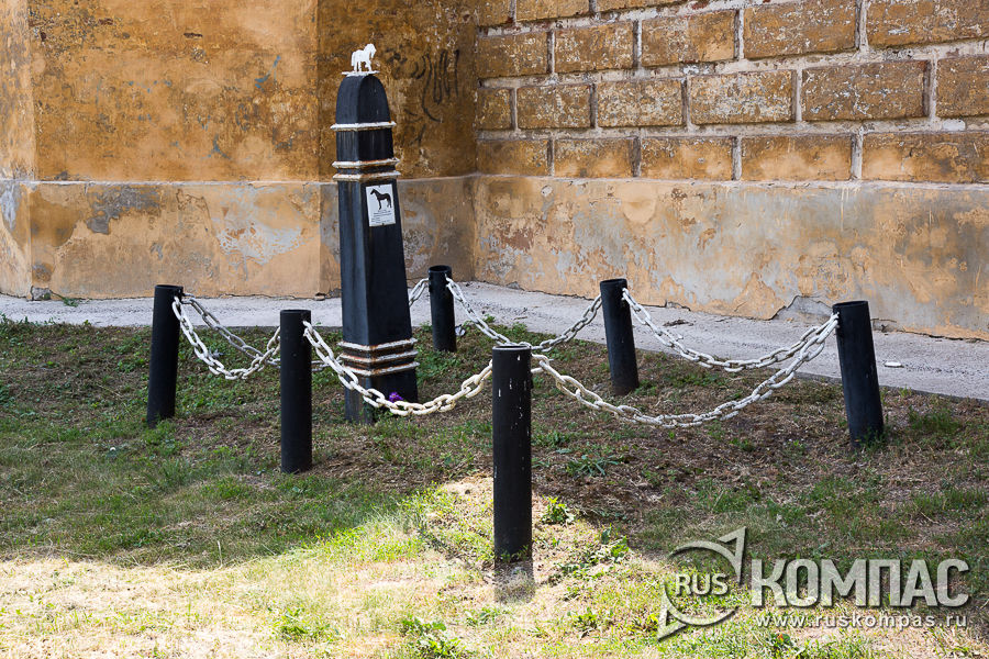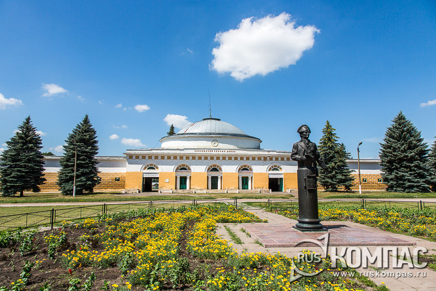 По тропинке от музея, мимо древних тополей, мы направляемся к зданиям конной часть. По пути встречаем памятник Алексею Григорьевичу Орлову, который держит в правой руке указ Екатерины II о даровании ему земель Воронежской губернии, а левой рукой он показывает, где будет основан конный завод.
