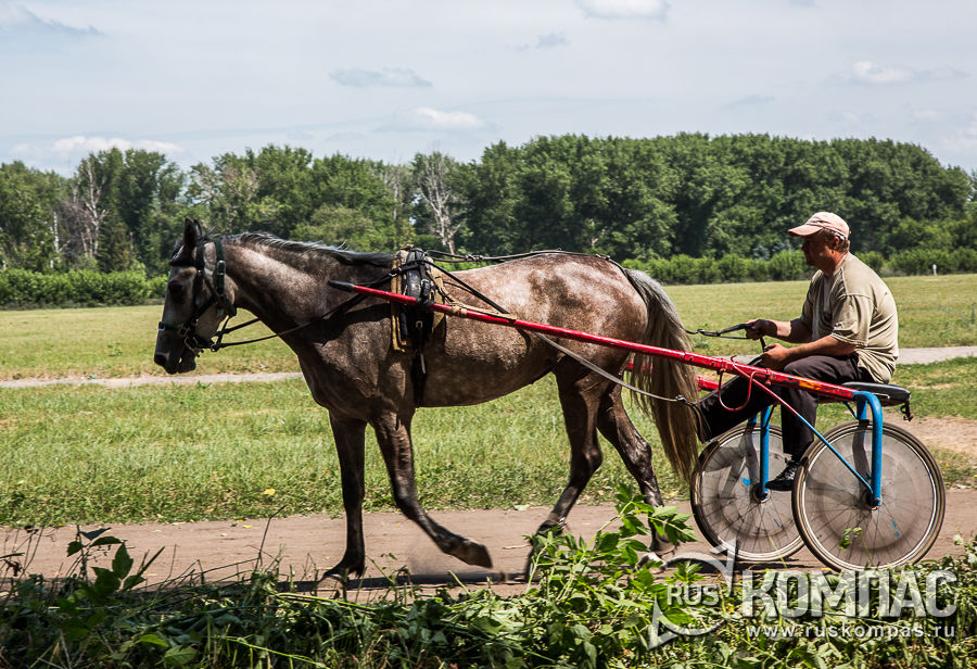 Сидя на качалке, тренер-наездник управляет рысаком. Кстати, единственное в России училище тренеров-наездников, основанное в конце XIX века, находится на территории конного завода и действует по сей день. Что примечательно, сейчас в училище поступают в основном девочки, и такие профессии, как наездник и жокей, становятся женскими.