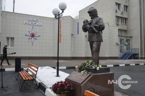 Церемония, которая состоялась сегодня, приурочена к важной дате 25-летию МЧС России. Бронзовый монумент пожарного с ребенком на руках установлен перед зданием Главного управления МЧС России по Белгородской области. Автор композиции Анатолий Александрович Шишков - известный белгородский скульптор, член Общественной палаты Белгородской области, член комиссии по вопросам образования, науки, культуры, заведующий кафедрой рисунка и скульптуры Белгородского государственного технологического университета им. В. Г. Шухова, профессор, член Союза художников РФ. Композиция монумента, скульптура пожарного, выносящего из огня ребенка, олицетворяет героизм, мужество и самоотверженное служение делу спасения. При изготовлении памятника использована бронза, бетон и натуральный гранит - фигура высотой 2,93 метра. Открытие прошло в торжественной обстановке, в окружении личного состава пожарных и спасателей, жителей города, первых лиц области и города, и заслуженных ветеранов МЧС. Перед собравшимися, выступали артисты Белгородского драматического театра имени М.С. Щепкина.