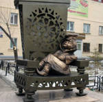 В Новосибирске рядом с экономическим лицеем на улице Крылова установлена скульптура главного героя мультфильма «Вовка в тридевятом царстве».