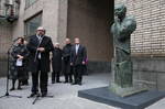 Бронзовый бюст политика, подпирающего подбородок рукой, стал уже вторым в Москве. Впервые идеолог российских экономических реформ был отлит в бронзе три года назад - до сих пор этот бюст стоит в здании Высшей школы экономики.