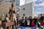 В сквере перед Якутским педагогическим институтом был торжественно открыт памятник учителю. Фигура учительницы, с букварём в руке стоящей рядом с учеником-первоклассником, сидящим на парте, отлита скульптором Максимом Павловым в бронзе.