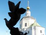 Памятник представляет собой огромный гранитный валун природного происхождения, с которого взлетают в небо бронзовые голуби. Установлен он возле Храма Рождества Пресвятой Богородицы.