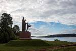 Скульптурная композиция высотой более трех метров установлена на берегу Волги, недалеко от храма Богоявления-на-Острову, где в свое время крестили Ушакова. Она хорошо видна с проходящих по великой русской реке судов.