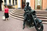 Монумент из бронзы изображает музыканта в очках на мотоцикле «Ява» с разбитой фарой. В основу композиции легли кадры из фильма «Игла», в котором певец сыграл главную роль, говорит автор работы, московский скульптор Алексей Благовестнов.