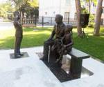 ак сообщает пресс-центр мэрии краевого центра, преемственность поколений символизируют три фигуры: ветеран, сидящий на скамейке с маленькой девочкой, и стоящий около них кадет.