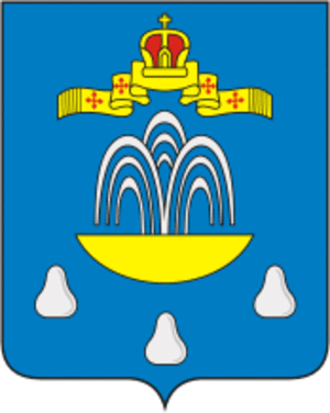 В современном виде герб выглядит иначе. В нем присутствуют и мотивы первого герба и его советского варианта. Вверху, на голубом поле изображена митра с золотой лентой. Под ними чаша из золота, из которой бьют серебряные струи фонтана. Внизу расположены три ступки с белилами.