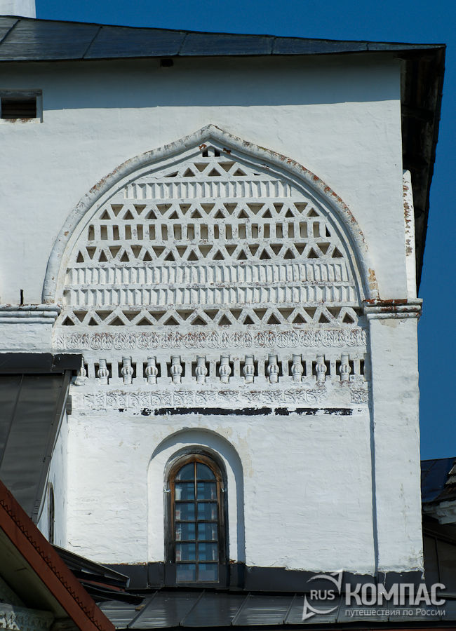 Украшенная по фасадам орнаментом из фигурного кирпича.