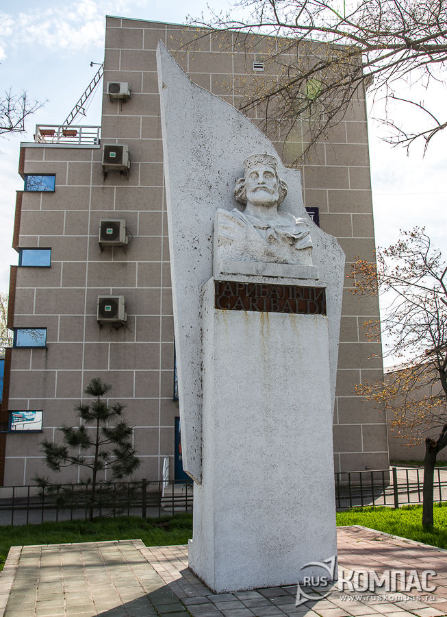 Установленный в память его пребывания в Таганроге в 1833 г. 8 апреля 1833 года шхуна "Клоринда" с грузом апельсинов зашла в Таганрогский порт. На её борту был тогда ещё совсем молодой, двадцатичетырёхлетний Джузеппе Гарибальди.