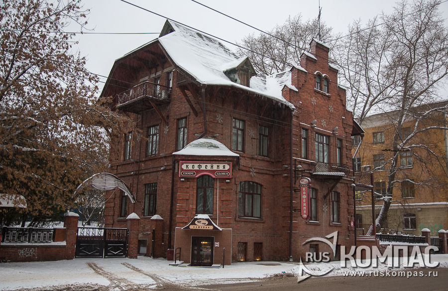 Этот необычный для Вятки проект коттеджа создал архитектор Нюквист Э.К. по примеру жилых домов Англии и Голландии. Строгий декор фасада здания из красного кирпича, ограничивающийся рустовкой углов, гармонично сочетается с объемной и сложной конструкцией: двухэтажный эркер на юго-восточном углу, высокий ступенчатый аттик с восточной стороны, двухэтажный балкон-веранда и высокая с переломами кровля над мансардой.