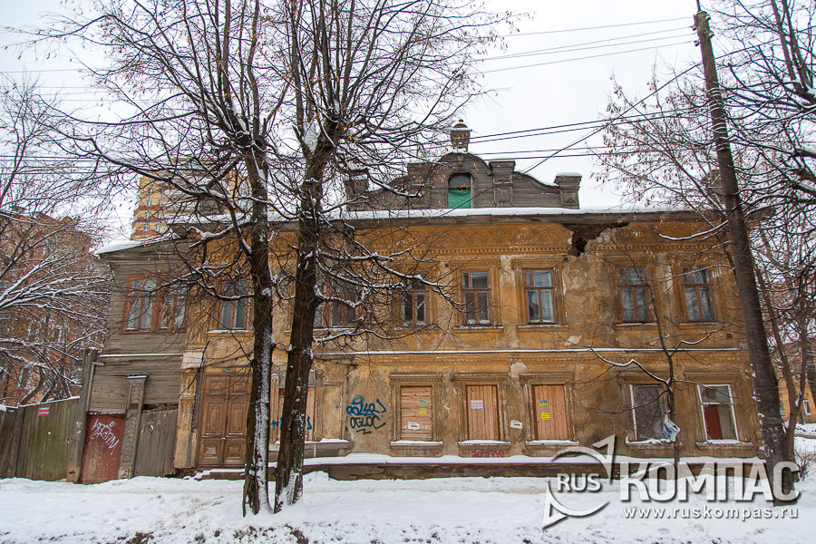 Двухэтажный деревянный дом на низком каменном фундаменте на углу Орловской и Никитской улиц построен губернским секретарем Егором Мышкиным в 1870 году