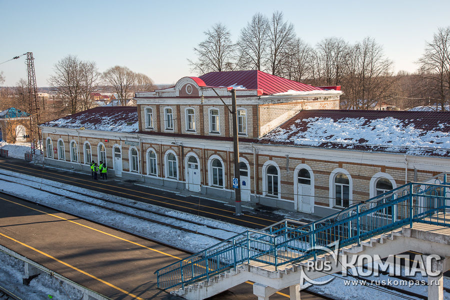 От станции до города 12 км. Можно доехать на рейсовом автобусе или на такси.