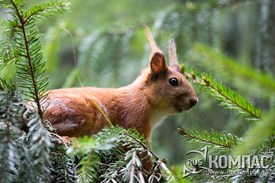 Курортная белочка смотрит на фотографа
