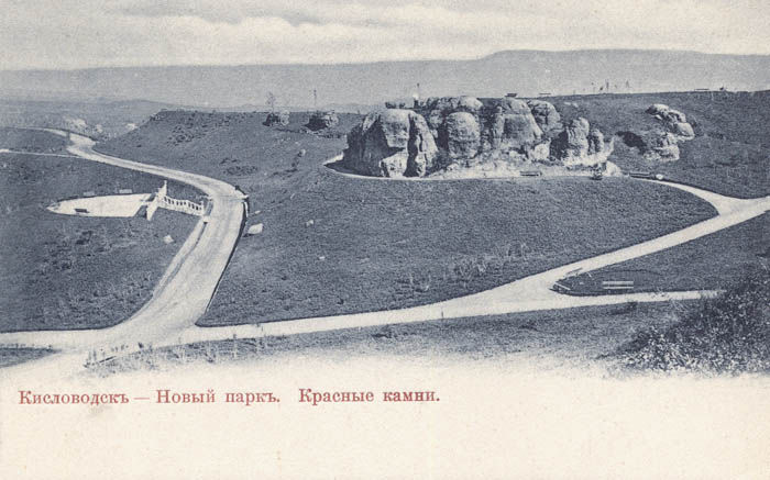 Красные камни в Курортном парке Кисловодска на старом фото