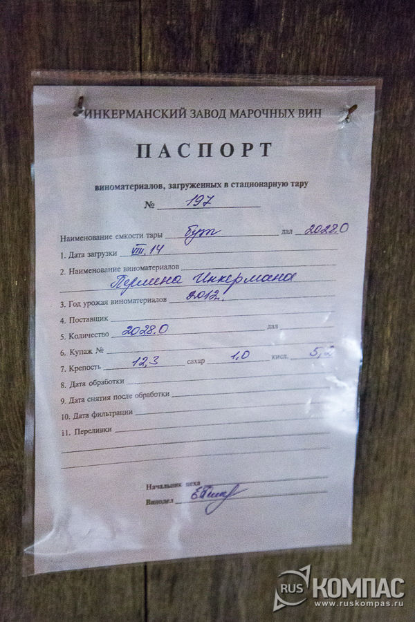 Паспорт на буте с виноматериалом «Жемчужина Инкермана»