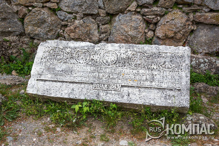 Закладная плита, найденная при раскопках крепости Фуна. Содержит монограммы князя Александра, посвятительную надпись и дату окончания строительства замка - 6967 год от Сотворения мира (1459 год от Рождества Христова).