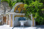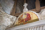 Шестикрылый Серафим, высеченный в скале при входе в пещерный храм Успения Богородицы