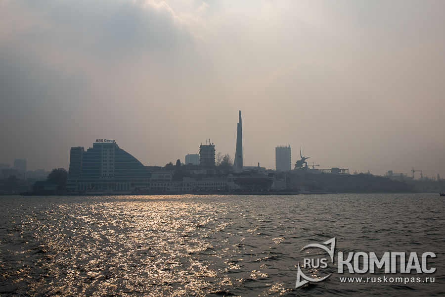 Вид с Артиллерийской бухты на памятник Штык и Парус