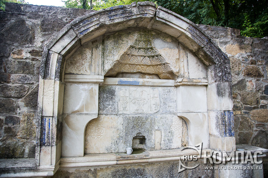 Один из фонтанов с родниковой водой на террасе монастырского сада