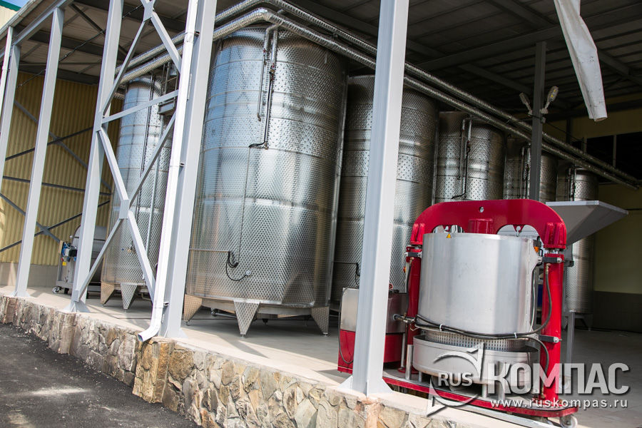 Справа - пресс для винограда, позади - ёмкости для отстаивания сока.