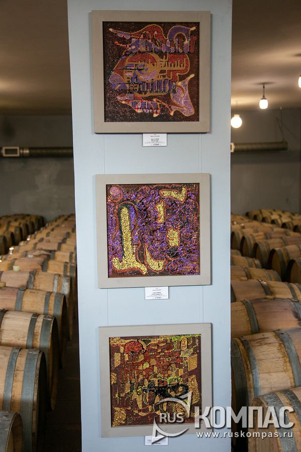 Выставка картин, написанных вином, в подвале винзавода «Мысхако»