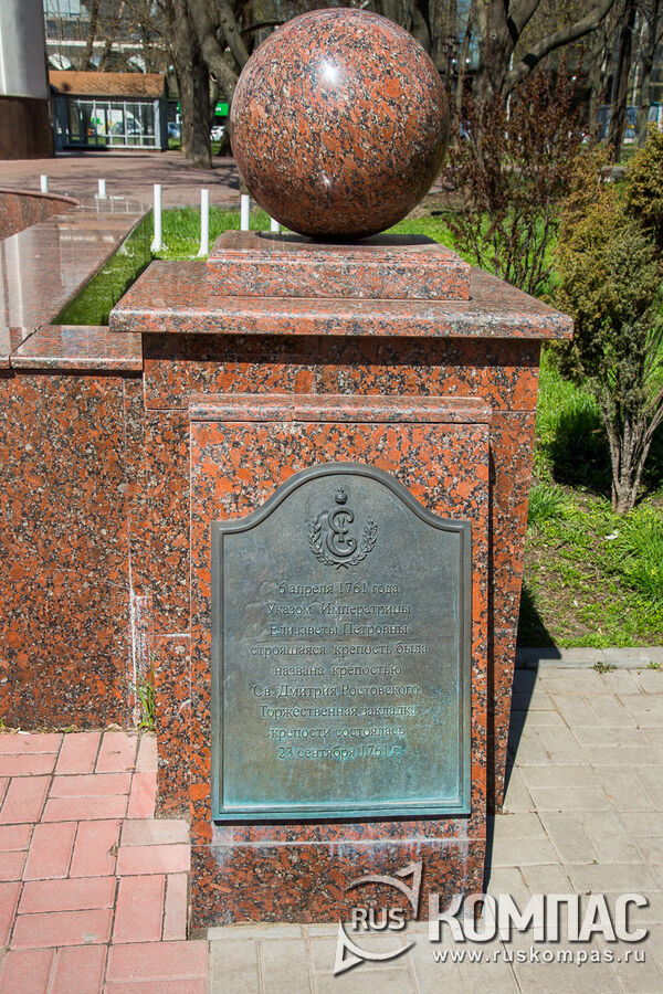 Памятный знак в честь закладки крепости Св. Дмитрия Ростовского 23 сентября 1761 года
