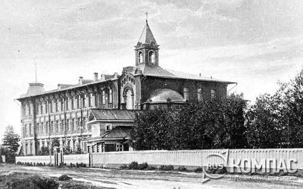 С 1925 года в помещениях монастыря открыли Великоустюгскую щетино-щеточную фабрику Госторга. До наших дней от всего монастырского комплекса остались перестроенные корпуса келий и фрагменты ворот монастырской ограды. Снимать, в общем-то, нечего, поэтому современной фотографии здесь не будет. Идем дальше на Красную гору. Перед нами здание женского епархиального училища, открытое в 1888 году при Иоанно-Предтеченском монастыре. Можно сравнить современный облик с тем, как училище выглядело после открытия: