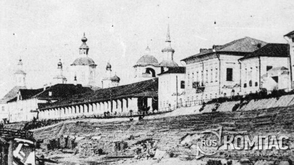 Музеи музеями, но пора пройтись по центральным улицам Устюга. До революции застройка города велась строго по плану, утвержденному в 1804 году. Город делился на две части, условной границей между которыми служило небольшое Смольниковское озеро, названное так по имени жившего поблизости купца Смольникова. Образовалось оно во время наводнения 1761 года, и в наши дни уже почти высохло. Первая часть города была самой населенной. Здесь и сегодня сосредоточено большинство церквей, а также бывших домов состоятельных устюжан, торговых лавок, административных учреждений, городской сад и скверы. Самой широкой и длинной улицей Устюга была Успенская улица, вытянувшаяся вдоль реки Сухоны с северо-запада на юго-восток. Сейчас это Советский проспект.